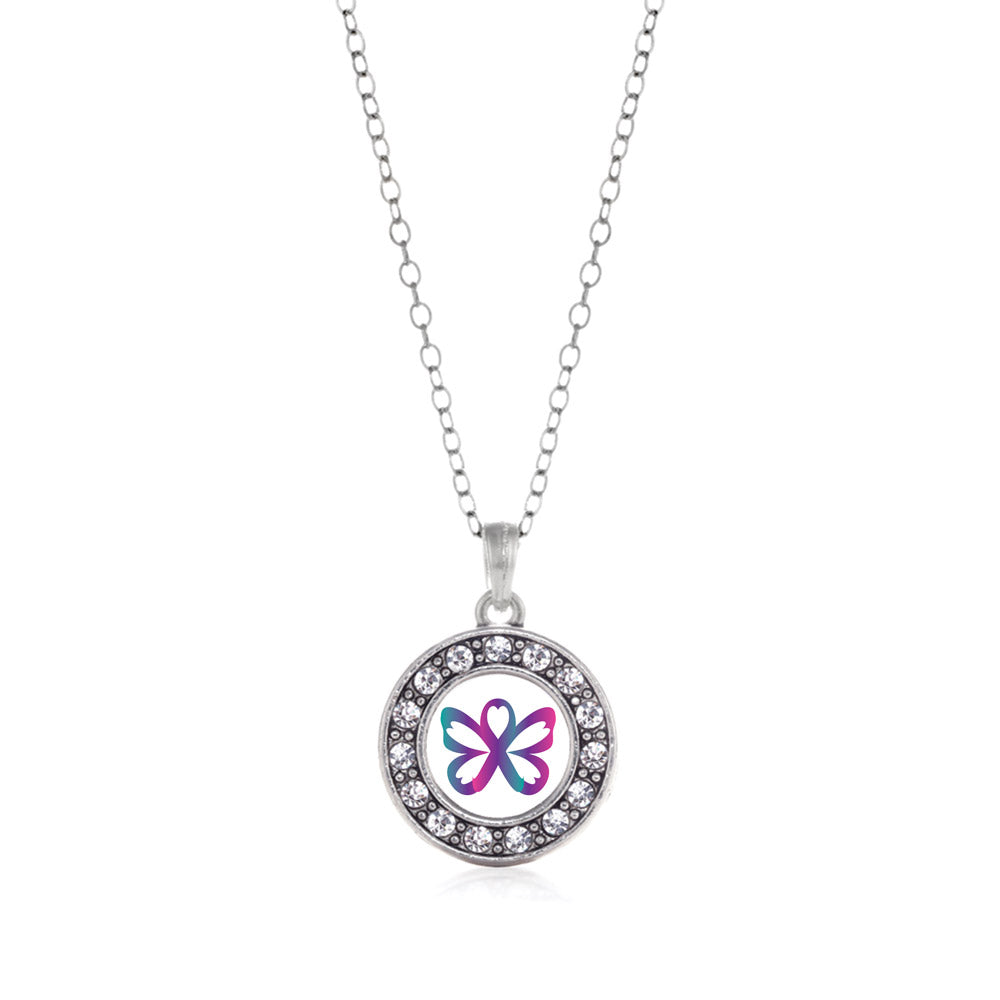 Our sparkling classic necklace, equipped with a stylish lobster claw clasp and the Thyroid Butterfly circle charm, is crafted from white metal with a silver plated finish and accented with cubic zirconia stones.