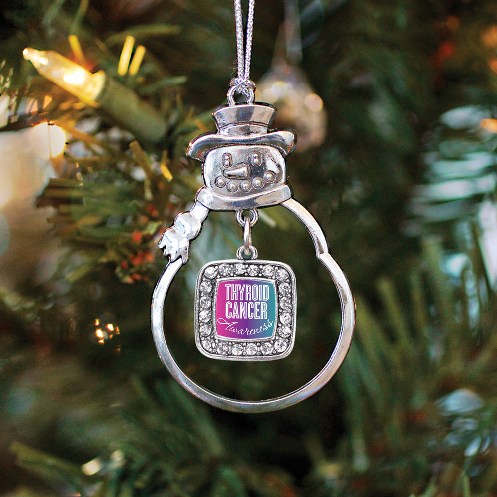 Silver Thyroid Cancer Awareness Square Charm Snowman Ornament