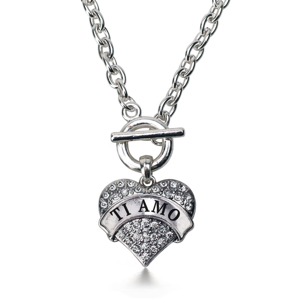 Silver Ti Amo Pave Heart Charm Toggle Necklace