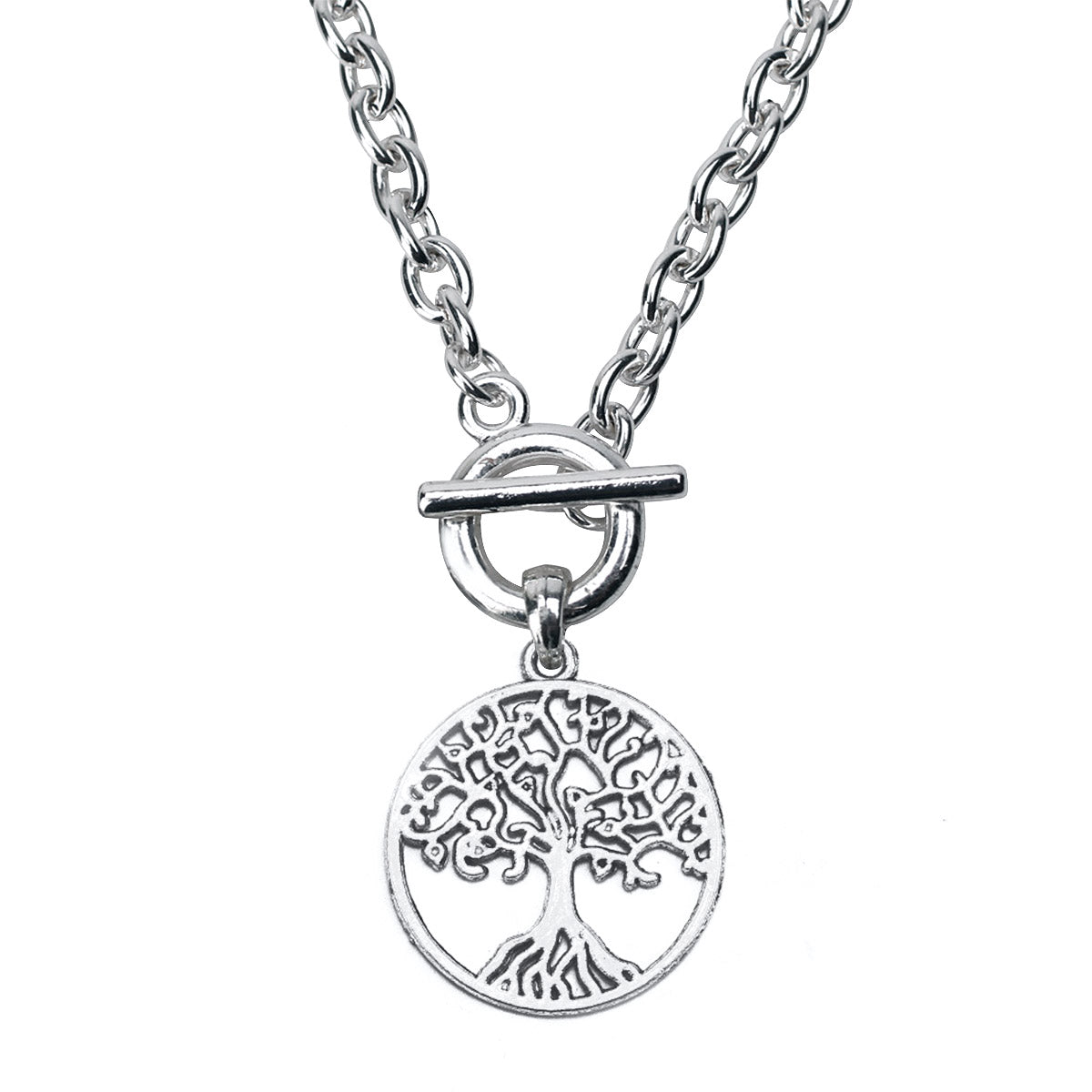 Our sparkling toggle necklace, equipped with a stylish toggle clasp and the Tree Of Life charm, is crafted from white metal with a silver plated finish.