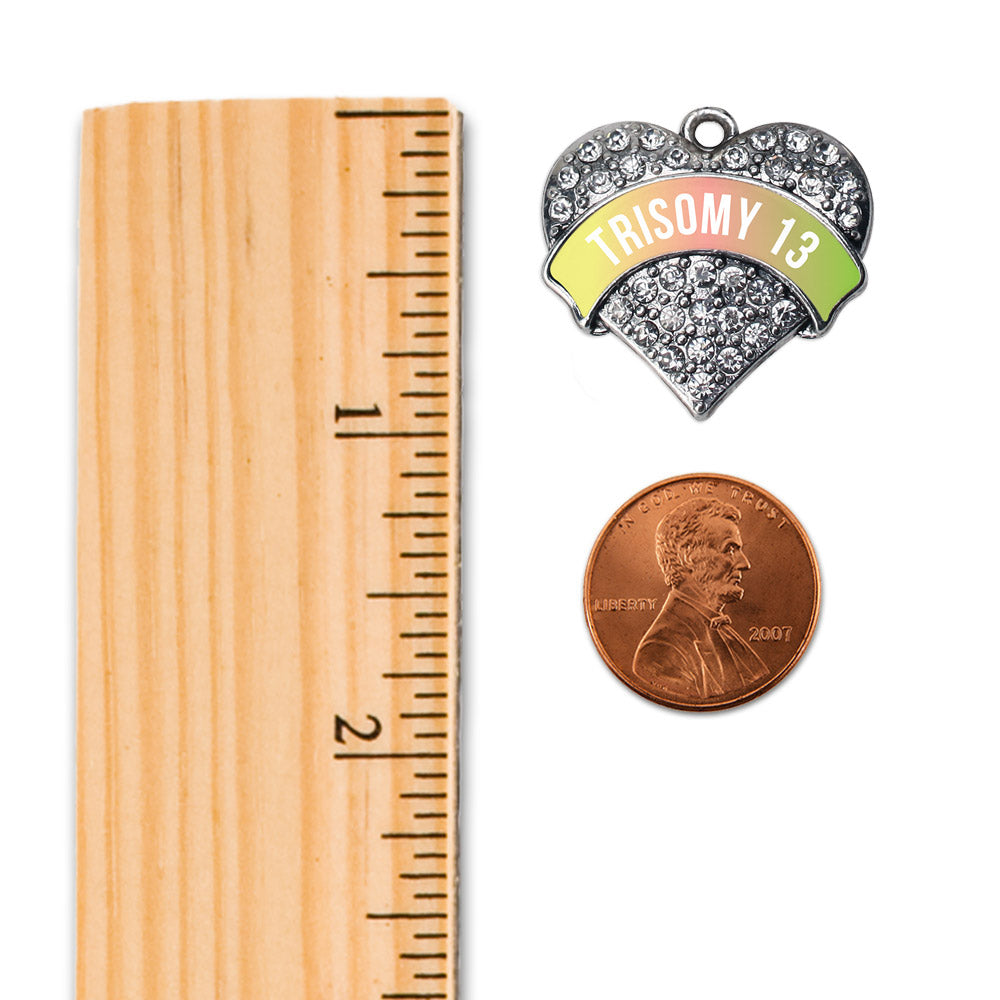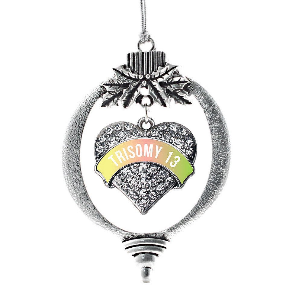 Silver Trisomy 13 Awareness Pave Heart Charm Holiday Ornament