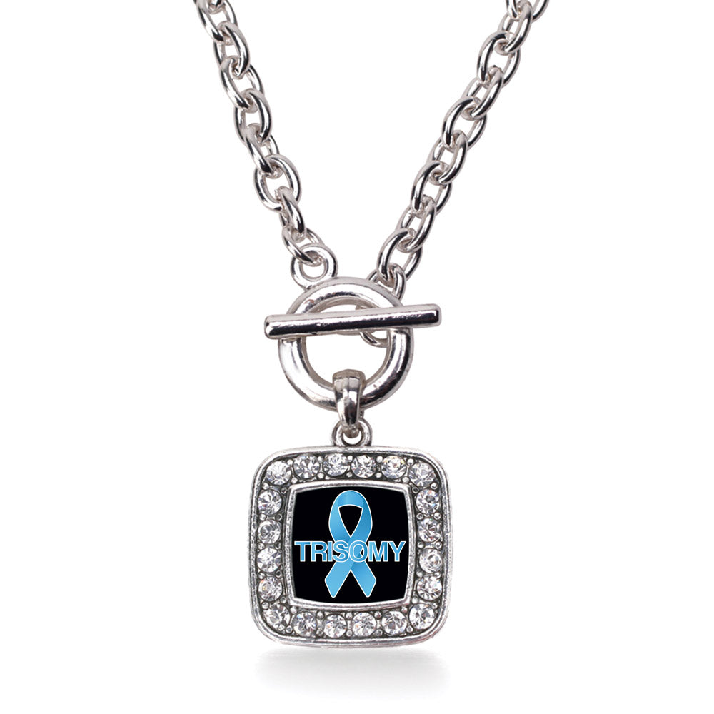 Silver Trisomy Awareness Square Charm Toggle Necklace