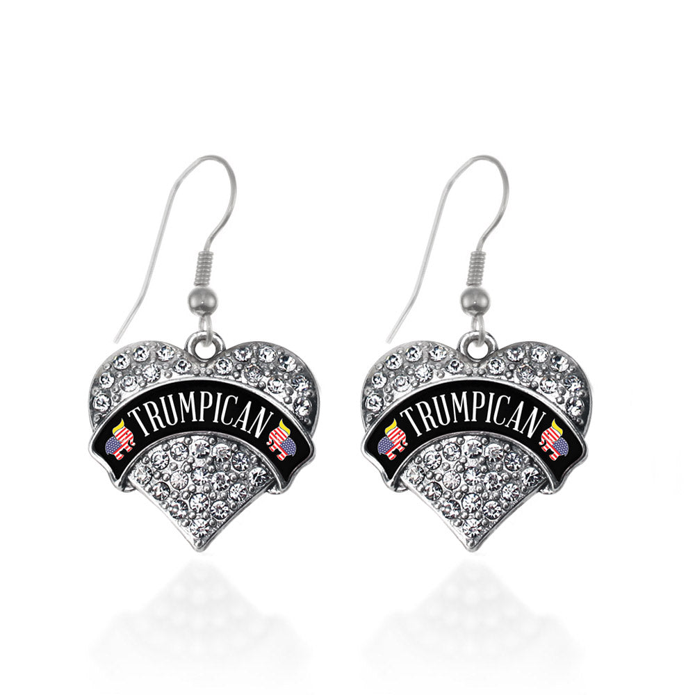 Silver Trumpican Pave Heart Charm Dangle Earrings