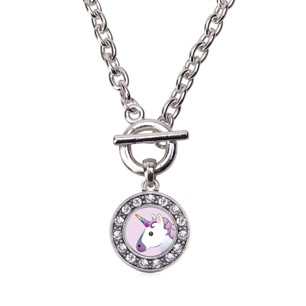 Silver Unicorn Emoji Circle Charm Toggle Necklace