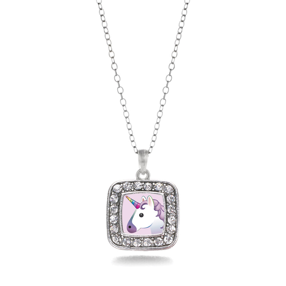 Silver Unicorn Emoji Square Charm Classic Necklace