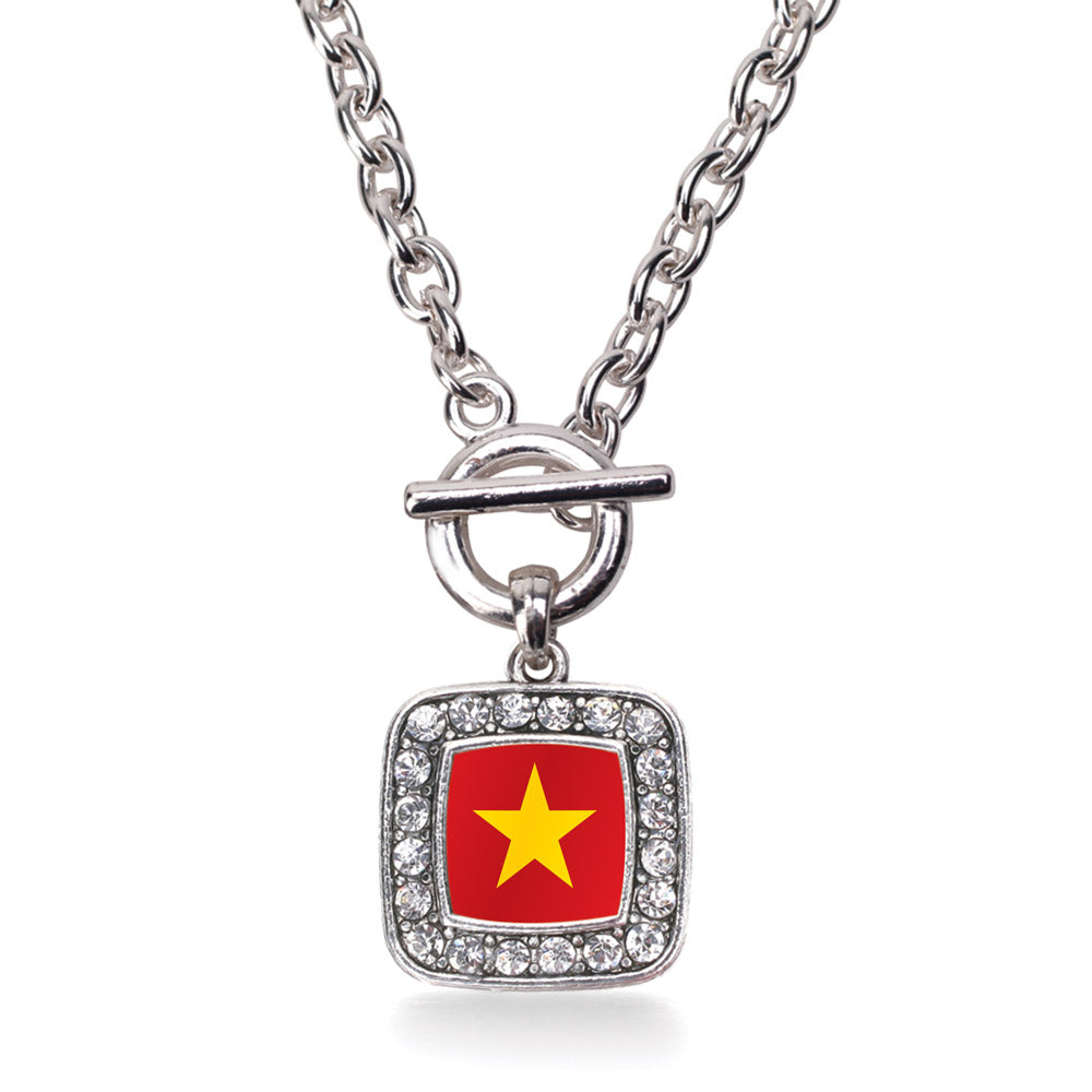 Silver Vietnam Flag Square Charm Toggle Necklace