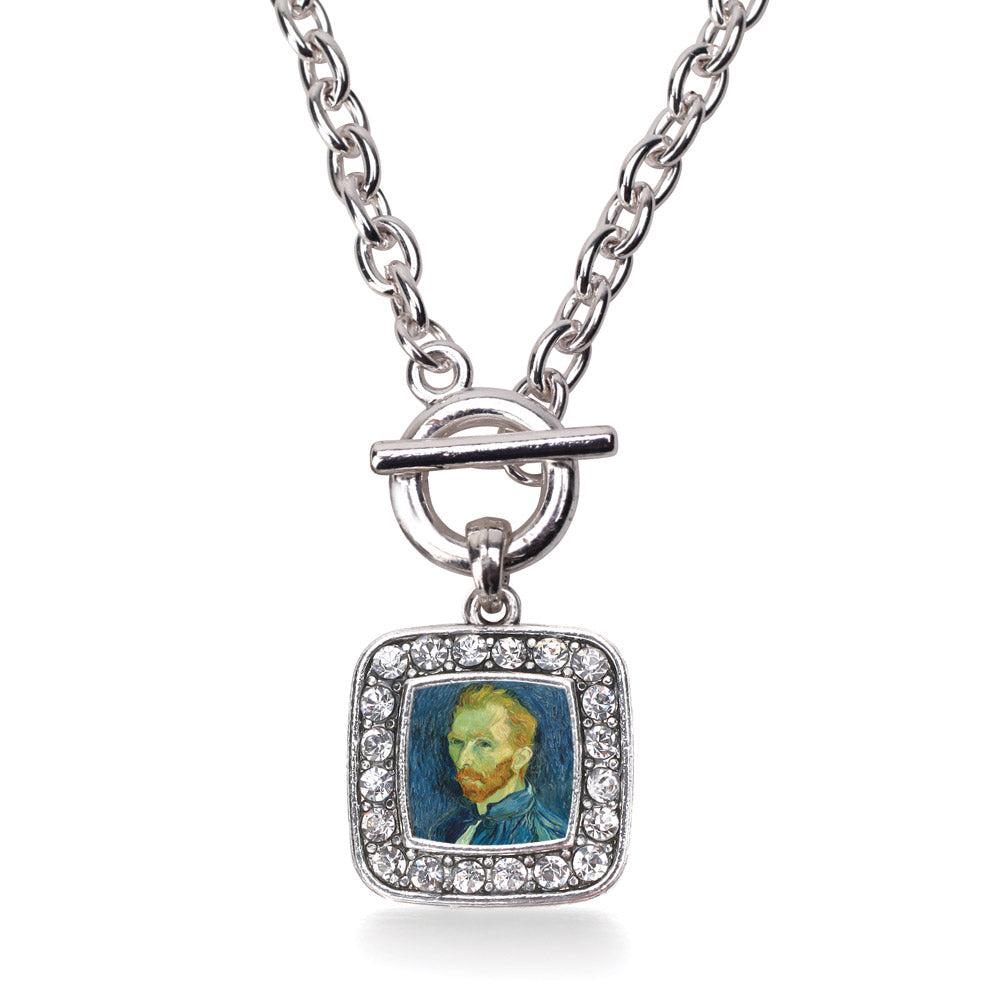 Silver Vincent Van Gogh Square Charm Toggle Necklace