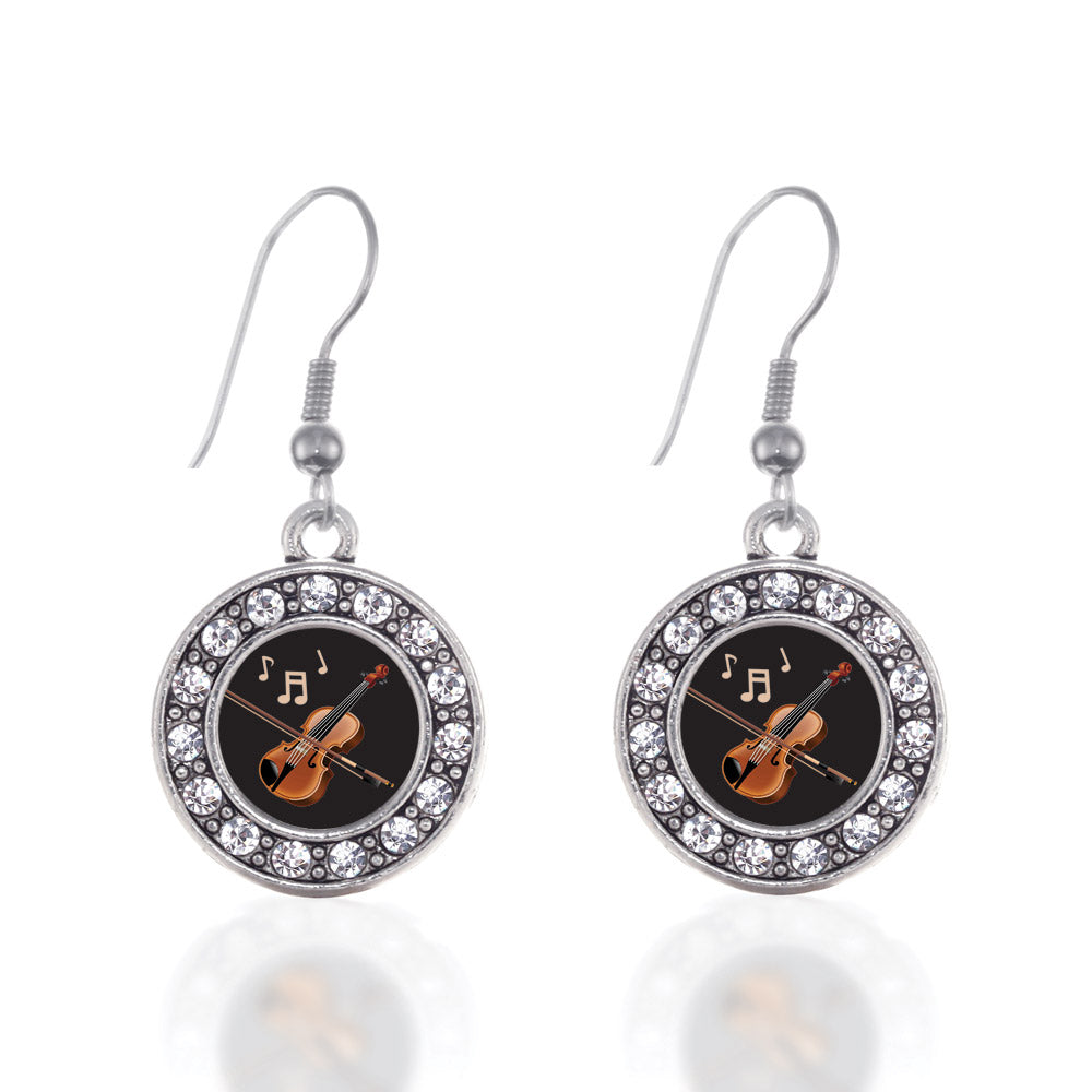 Silver Violin Circle Charm Dangle Earrings