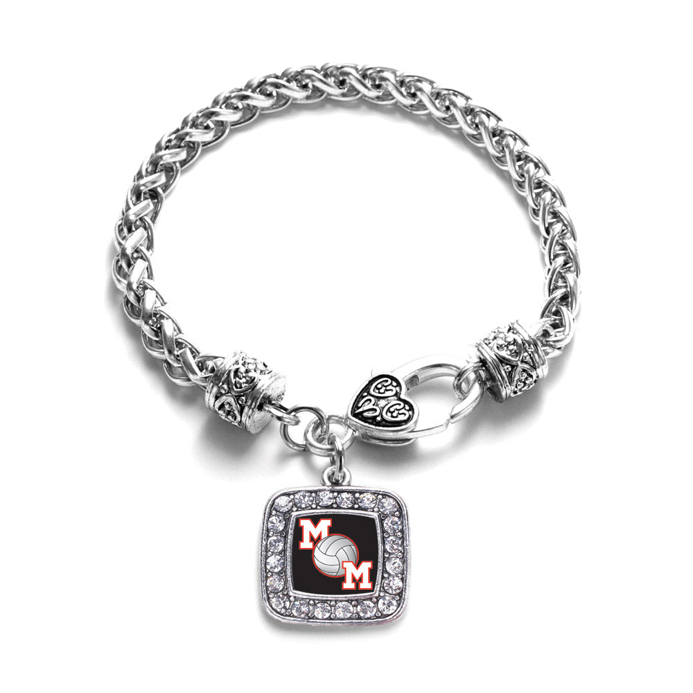 Silver Volleyball Mom Square Charm Braided Bracelet