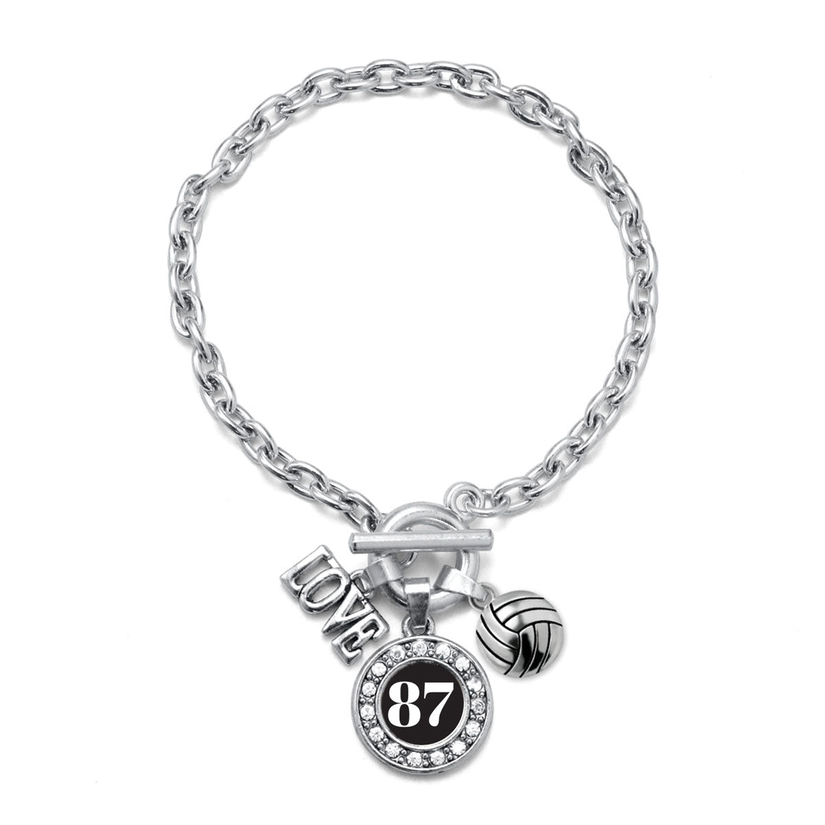 Silver Volleyball - Sports Number 87 Circle Charm Toggle Bracelet