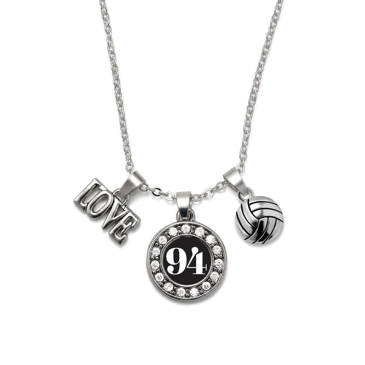 Our sparkling classic necklace, equipped with a stylish lobster claw clasp and the Volleyball - Sports Number 94 circle charm, is crafted from white metal with a silver plated finish and accented with cubic zirconia stones.