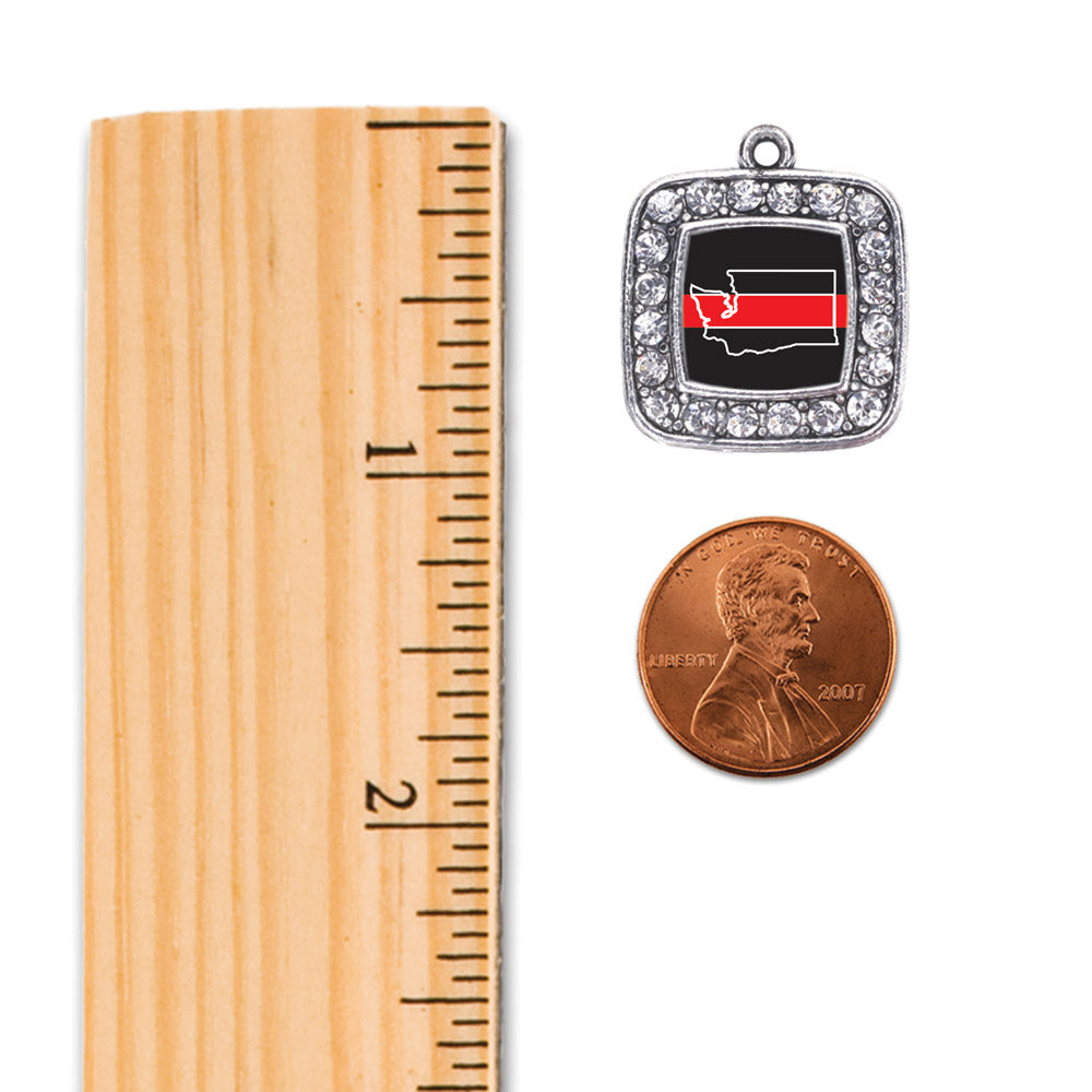 Silver Washington Thin Red Line Square Charm Holiday Ornament