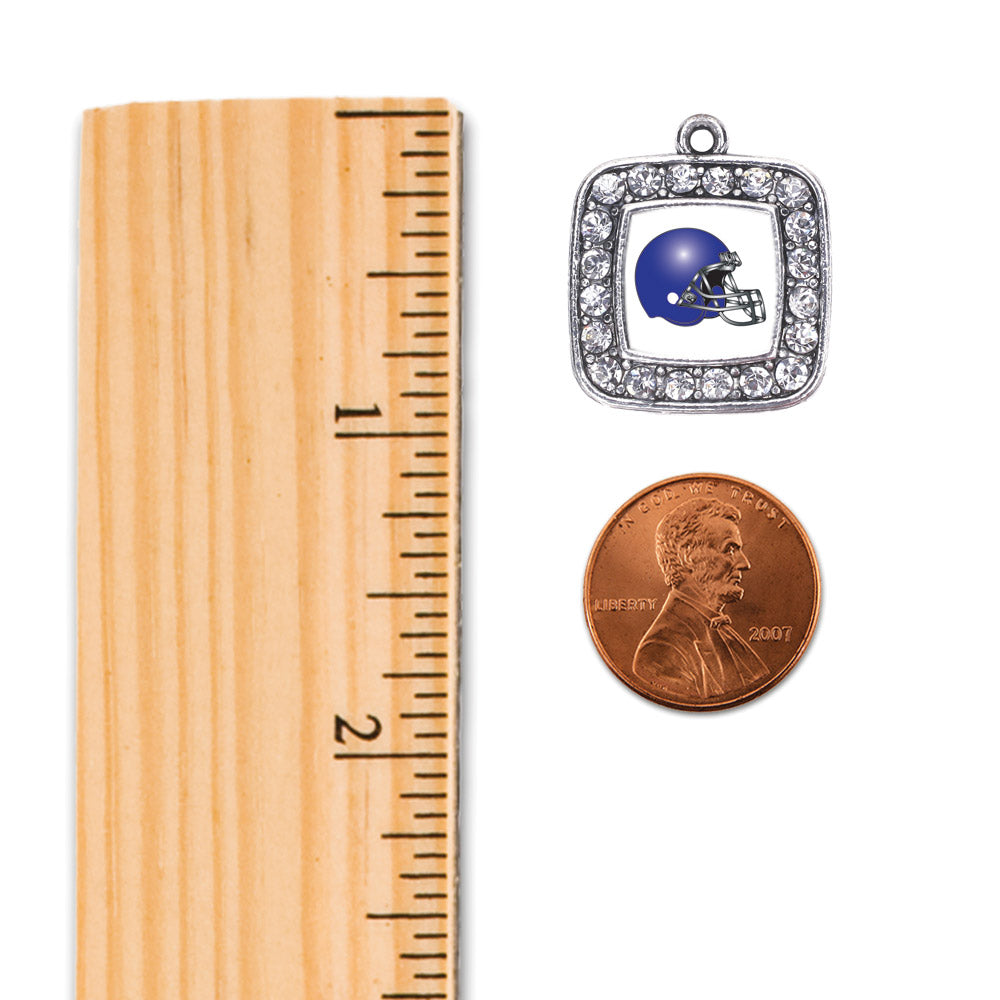 Silver White and Blue Team Helmet Square Charm Holiday Ornament
