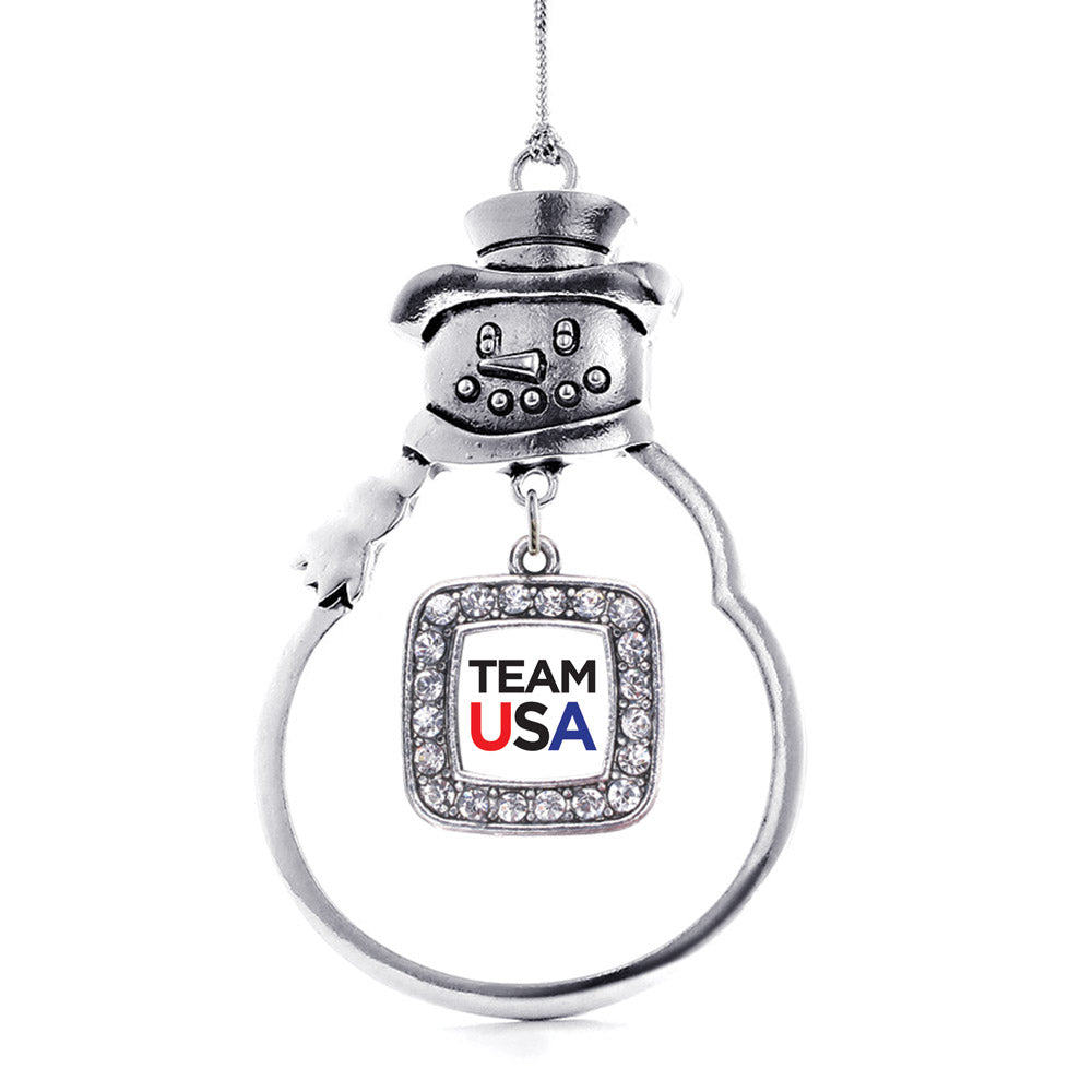 Silver White Banner Team USA Square Charm Snowman Ornament