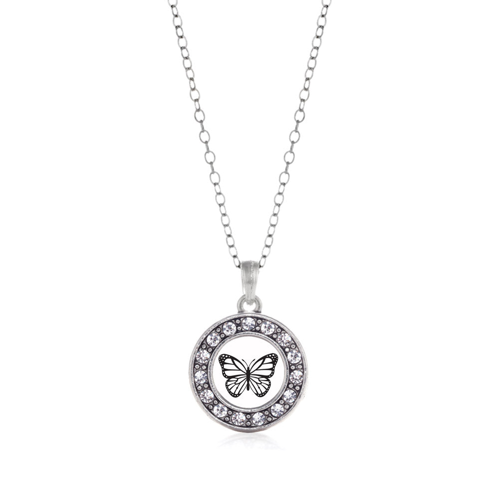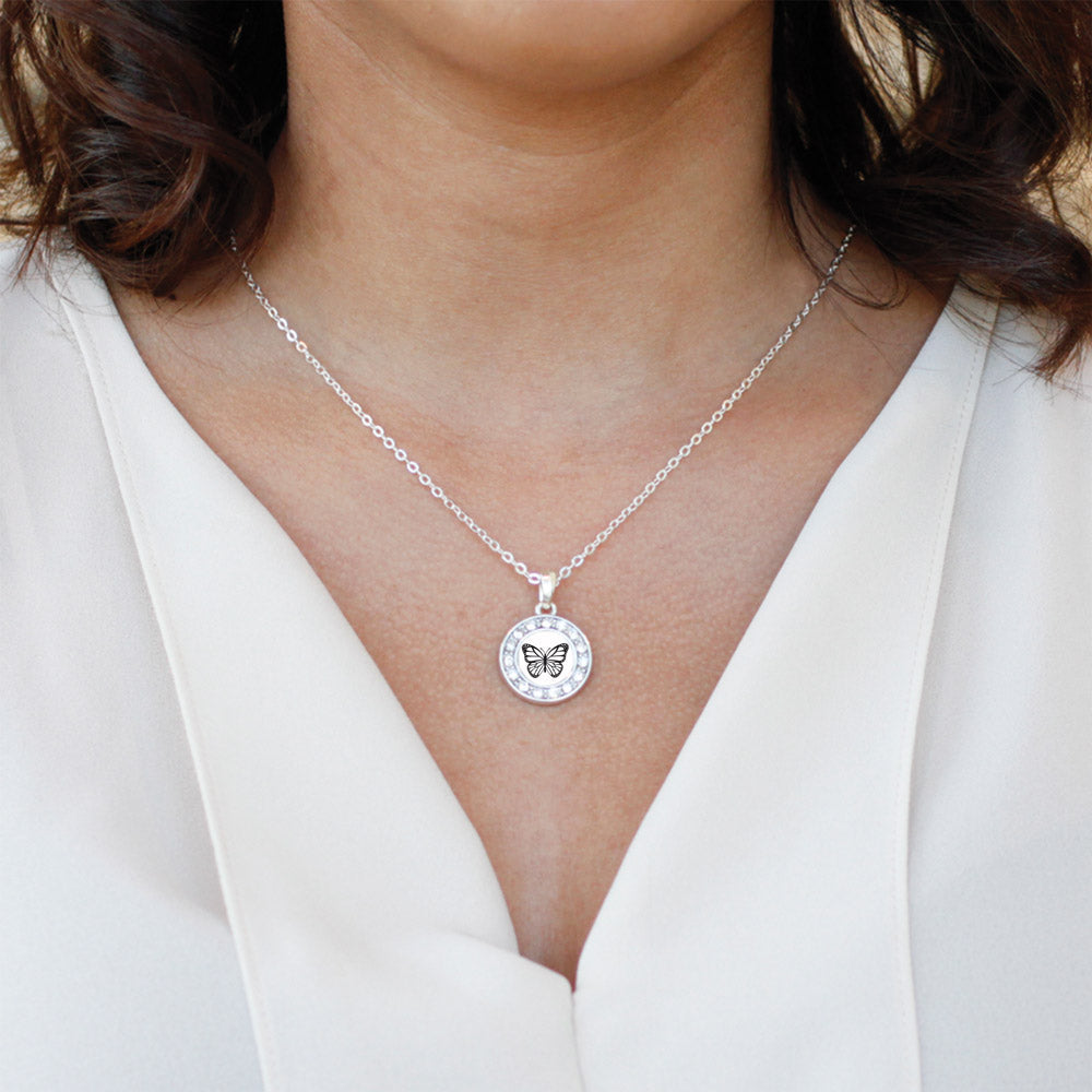 Our sparkling classic necklace, equipped with a stylish lobster claw clasp and the White Butterfly circle charm, is crafted from white metal with a silver plated finish and accented with cubic zirconia stones.