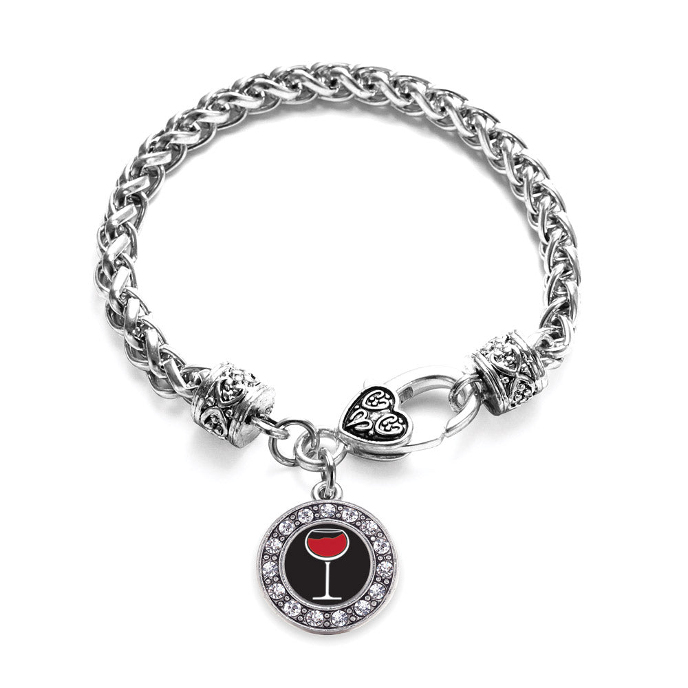 Our sparkling braided bracelet, equipped with a stylish lobster claw clasp and the Wine Lovers circle charm, is crafted from white metal with a silver plated finish and accented with cubic zirconia stones.