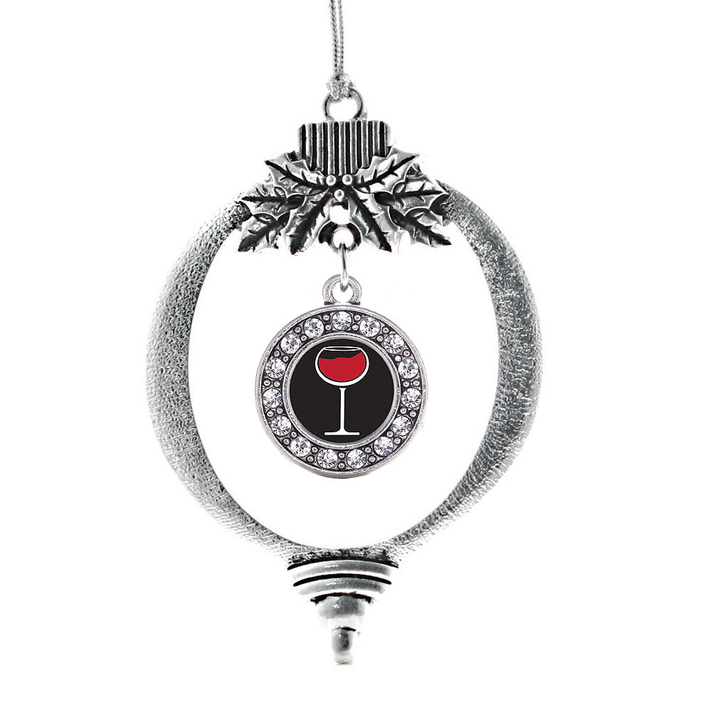 Silver Wine Lovers Circle Charm Holiday Ornament