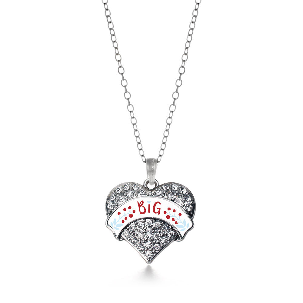 Silver Wine Red and Blue Big Pave Heart Charm Classic Necklace