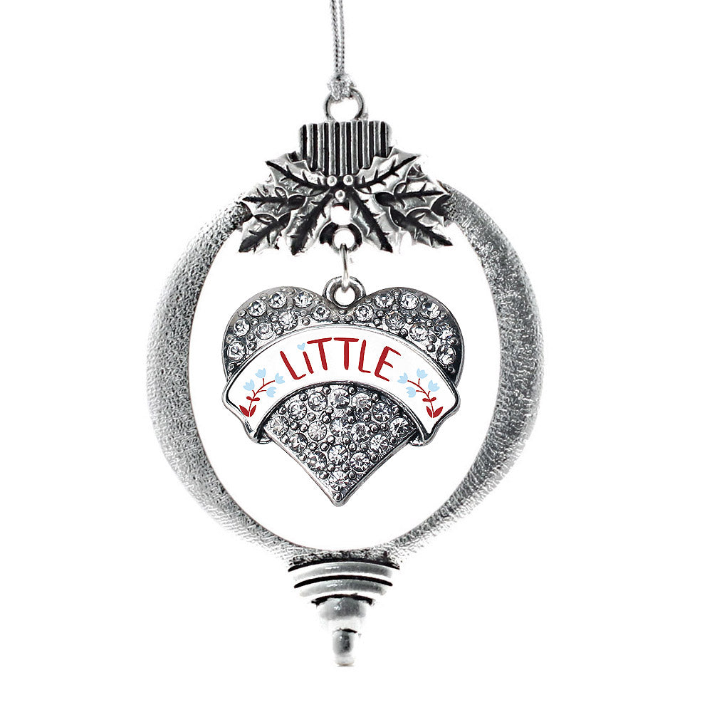 Our sparkling holiday ornament, equipped with a stylish silver rope and the Wine Red and Blue Little pave heart charm, is crafted from white metal with a silver plated finish and accented with cubic zirconia stones.