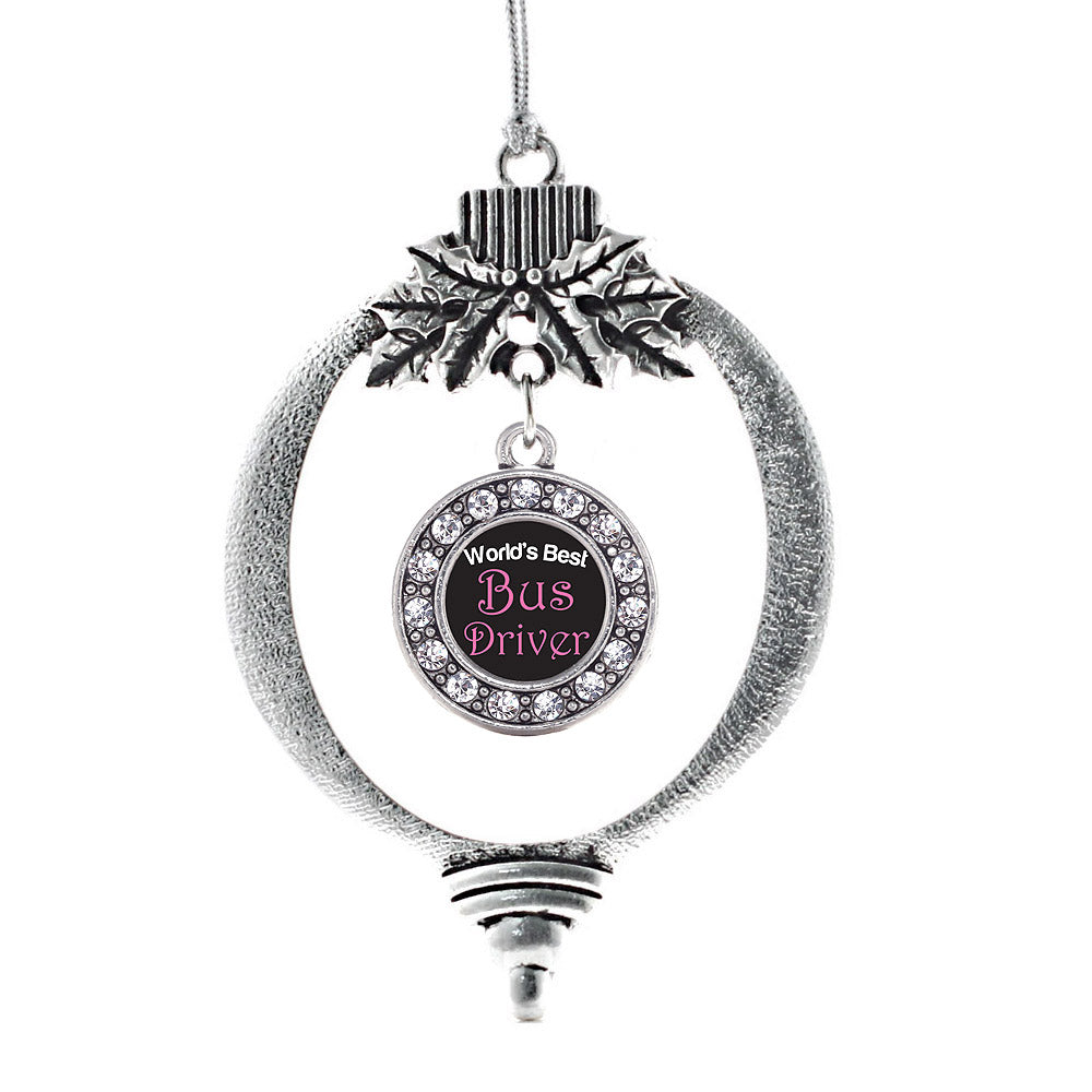 Our sparkling holiday ornament, equipped with a stylish silver rope and the World's Best Bus Driver circle charm, is crafted from white metal with a silver plated finish and accented with cubic zirconia stones.