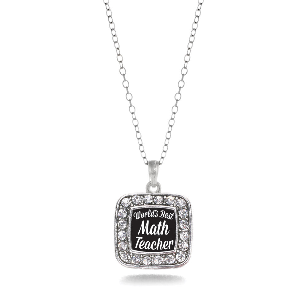 Silver World's Best Math Teacher Square Charm Classic Necklace