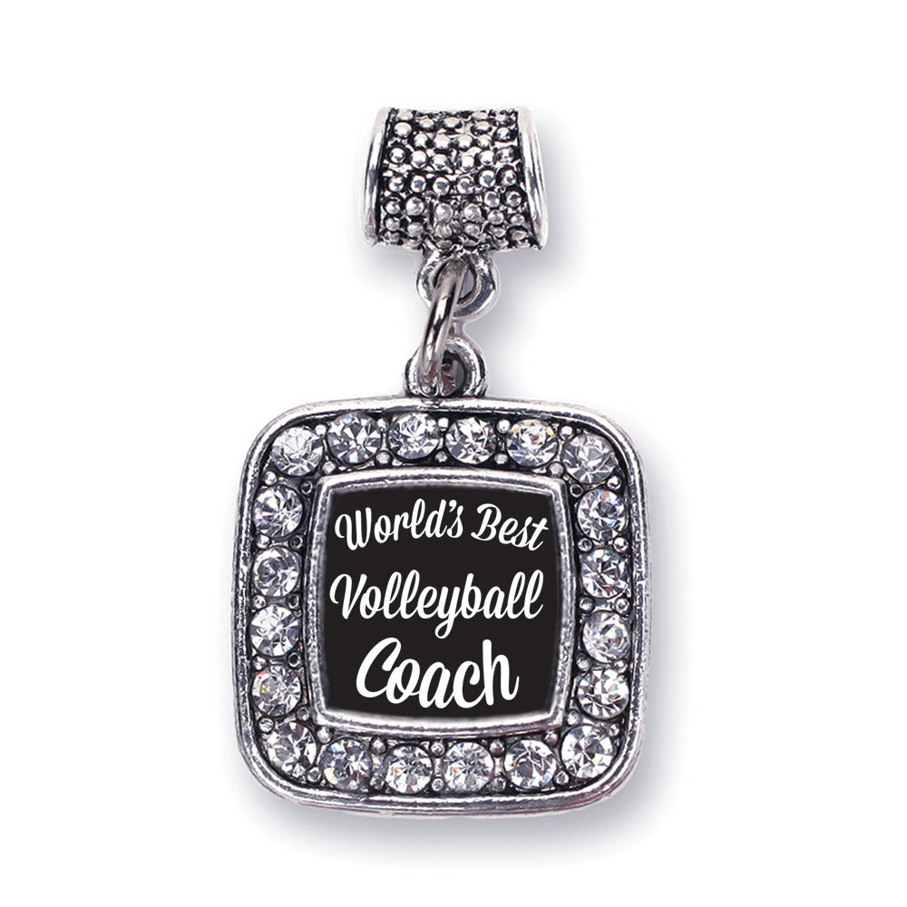 Our sparkling memory charm, equipped with a stylish charm attachment ring and the World's Best Volleyball Coach square charm, is crafted from white metal with a silver plated finish and accented with cubic zirconia stones.