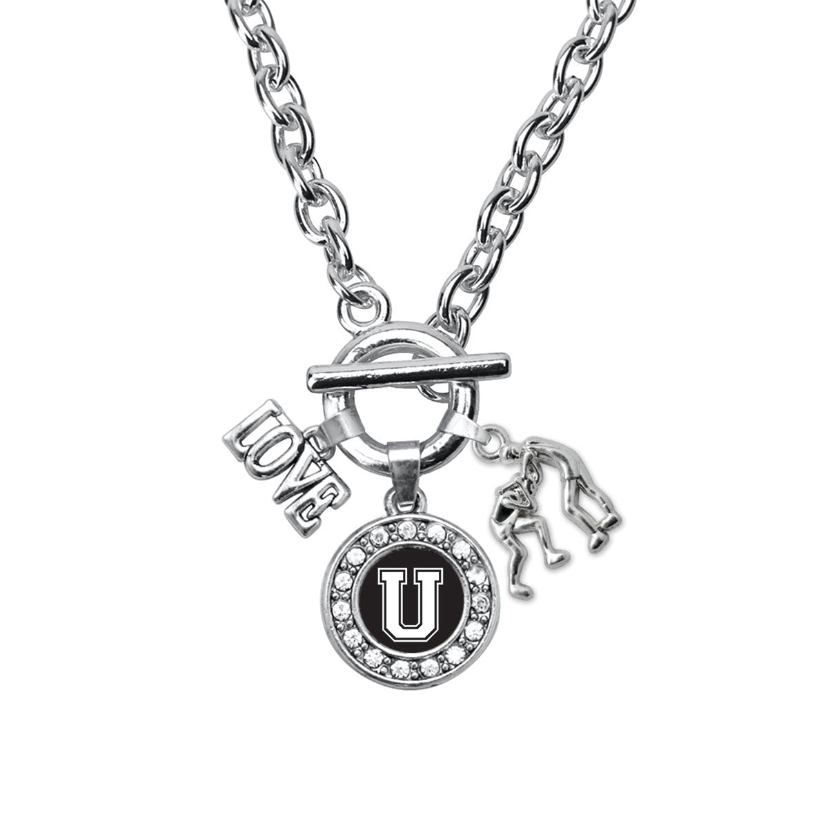 Silver Wrestling - Sports Initial U Circle Charm Toggle Necklace