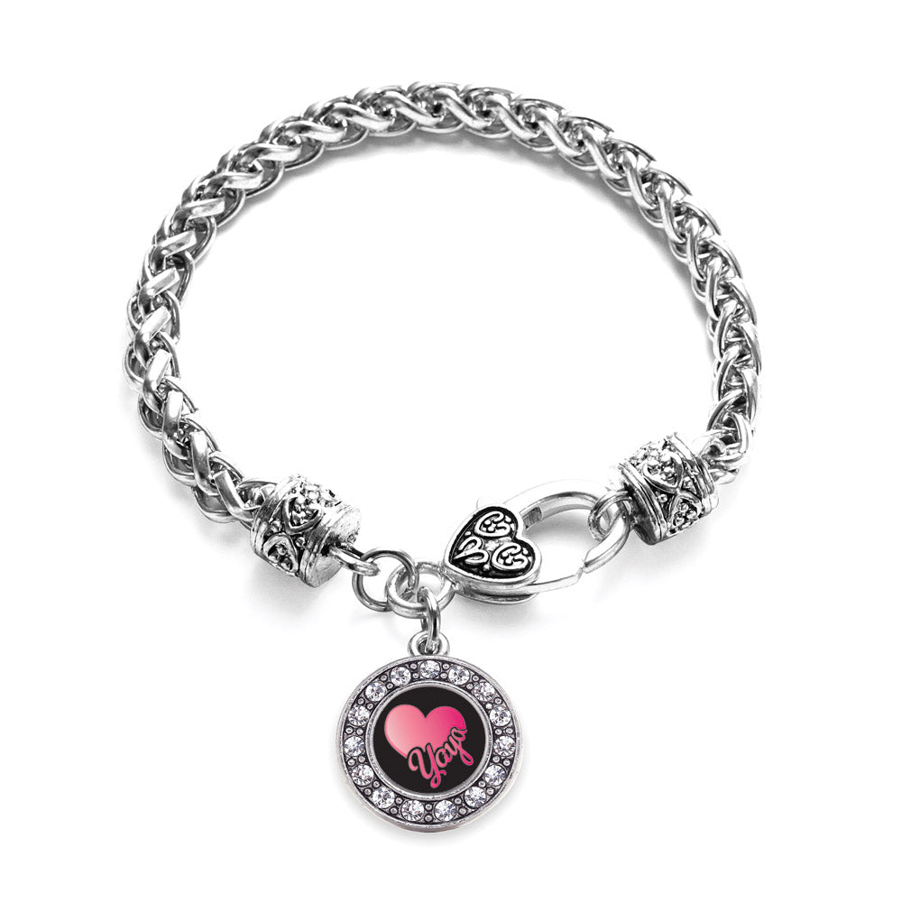 Our sparkling braided bracelet, equipped with a stylish lobster claw clasp and the Yaya circle charm, is crafted from white metal with a silver plated finish and accented with cubic zirconia stones.