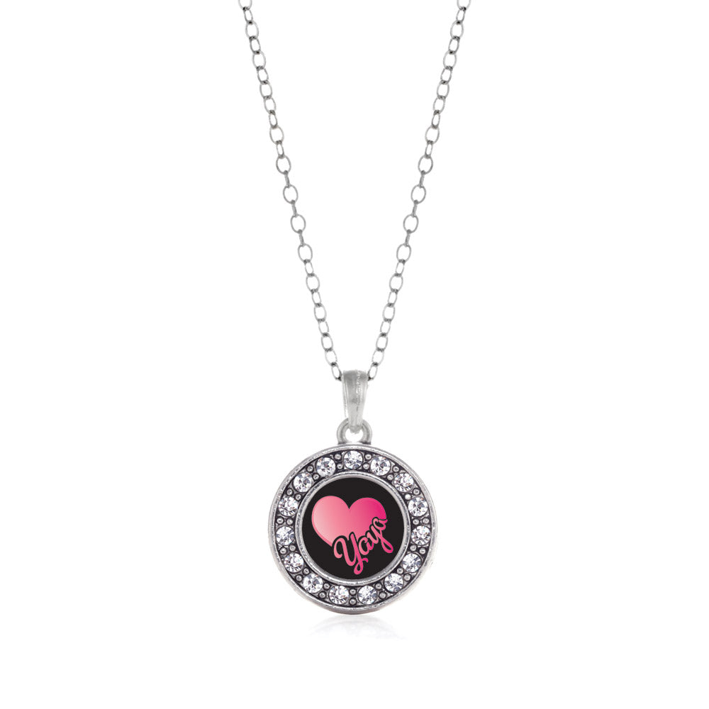 Our sparkling classic necklace, equipped with a stylish lobster claw clasp and the Yaya circle charm, is crafted from white metal with a silver plated finish and accented with cubic zirconia stones.