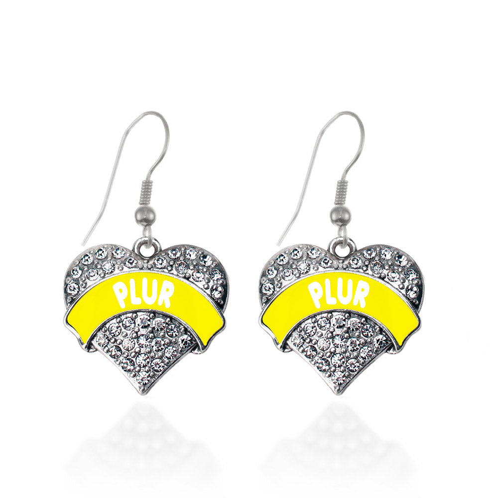 Silver Yellow PLUR Pave Heart Charm Dangle Earrings