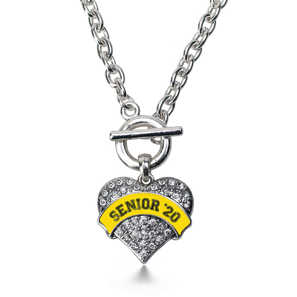 Silver Yellow Senior 2020 Pave Heart Charm Toggle Necklace