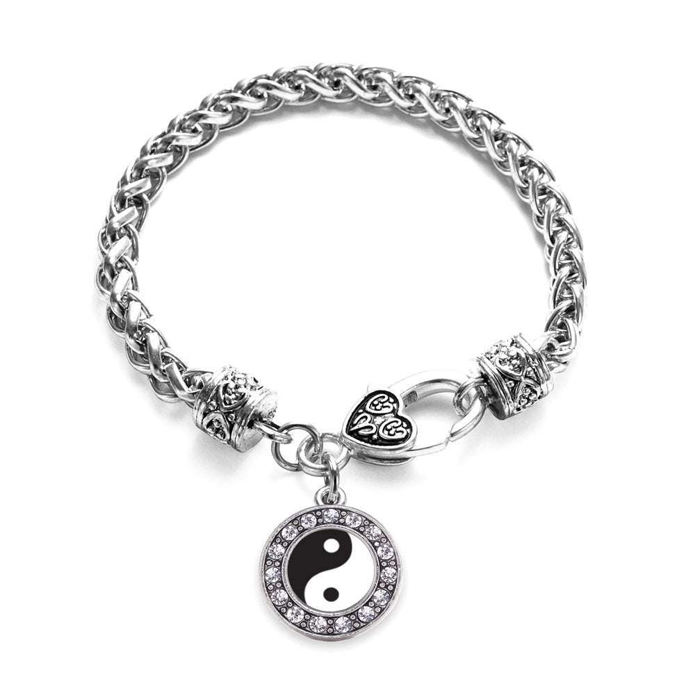 Our sparkling braided bracelet, equipped with a stylish lobster claw clasp and the Yin- Yang circle charm, is crafted from white metal with a silver plated finish and accented with cubic zirconia stones.