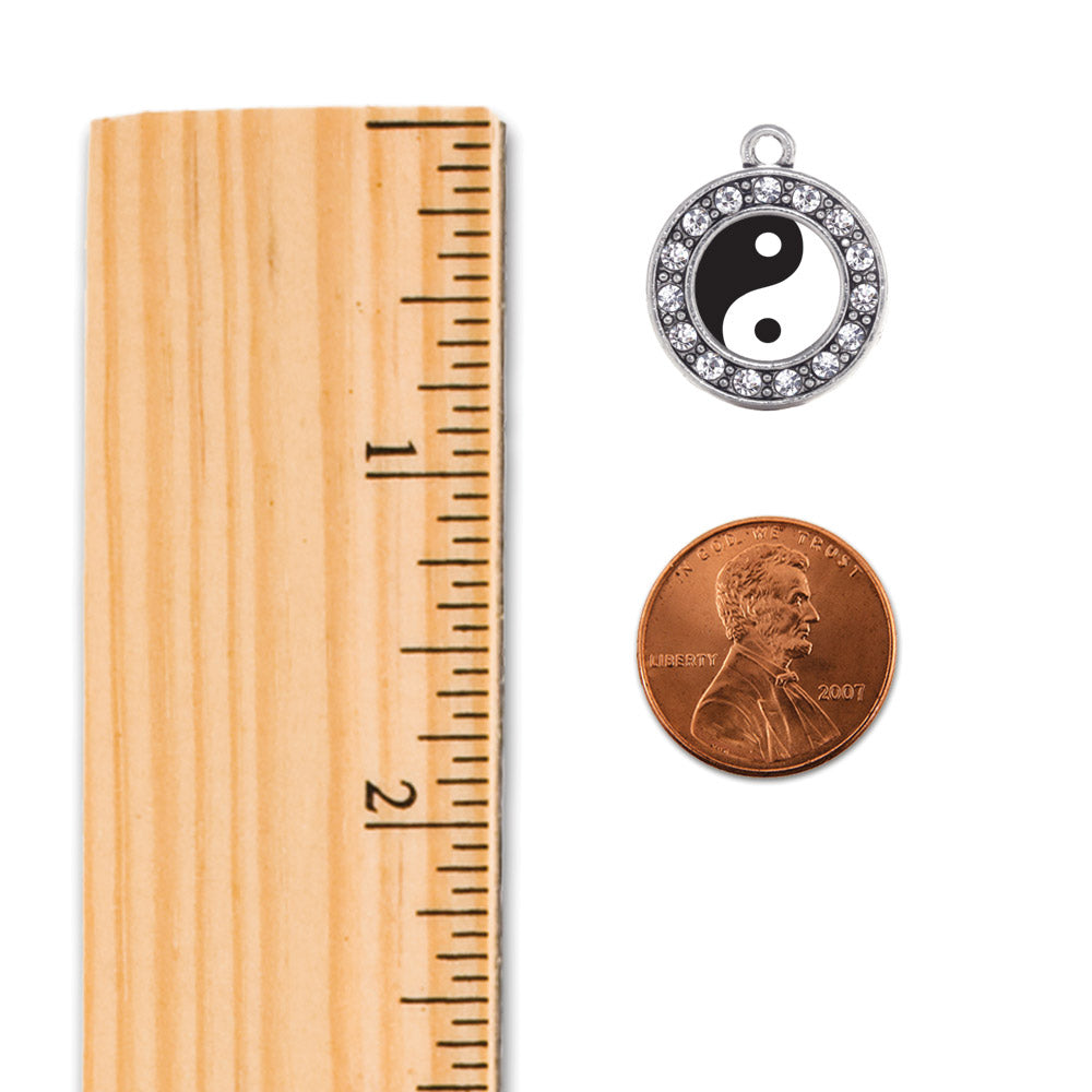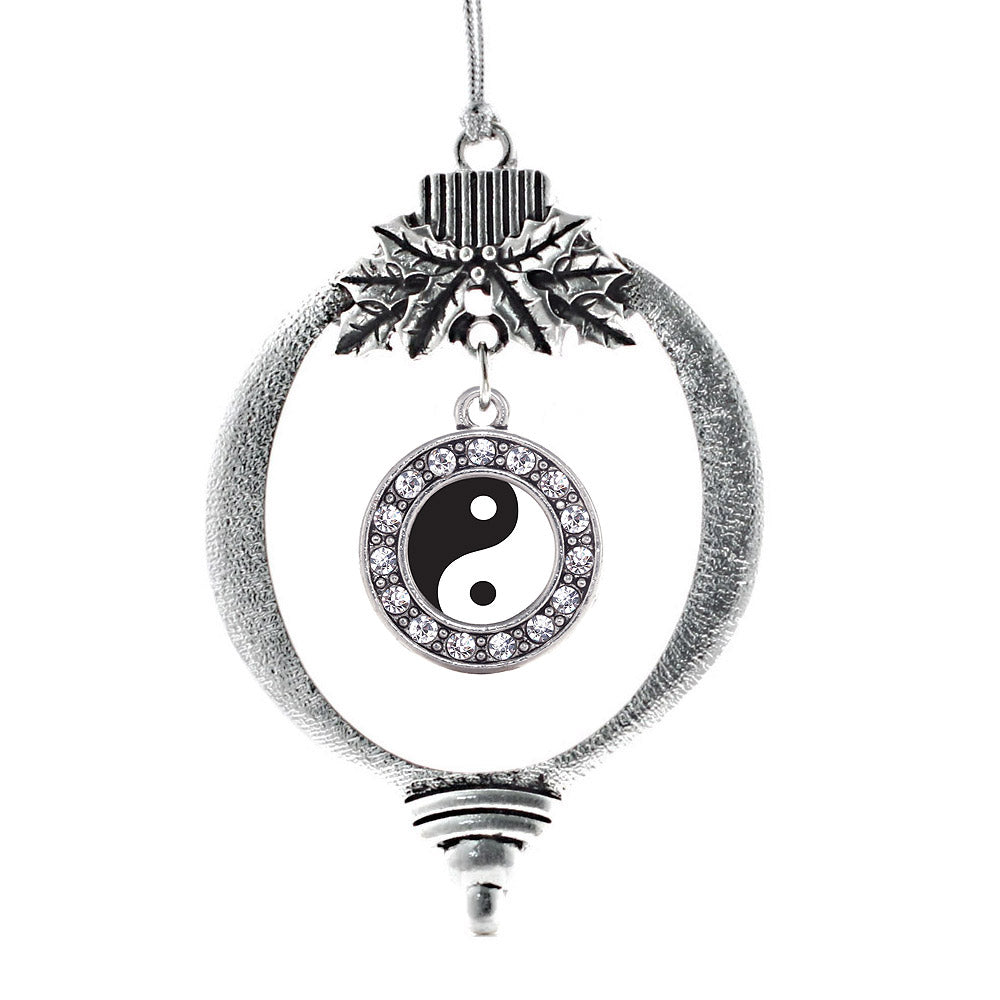Our sparkling holiday ornament, equipped with a stylish silver rope and the Yin- Yang circle charm, is crafted from white metal with a silver plated finish and accented with cubic zirconia stones.