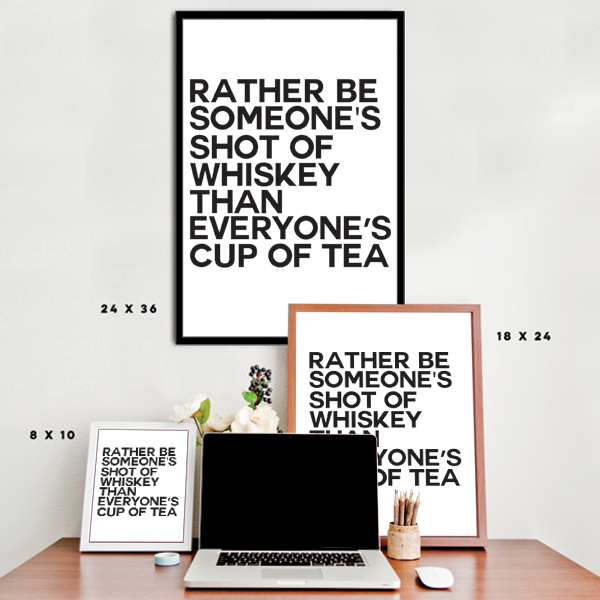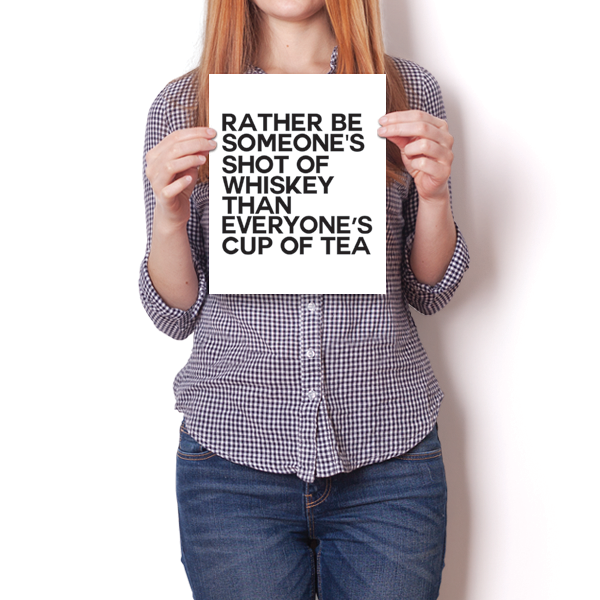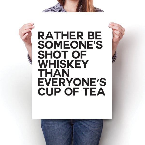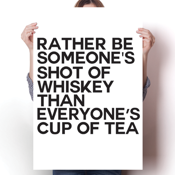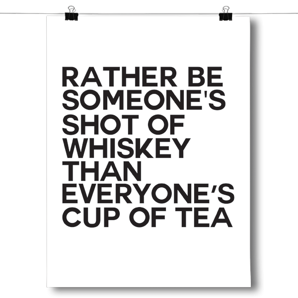 This unique Someone's Shot of Whiskey poster was creatively designed and printed on thick paper with a high-quality finish in-house using UV Printing process, where the ink is cured by UV rays to produce sharp and vivid images with a high degree of color accuracy.