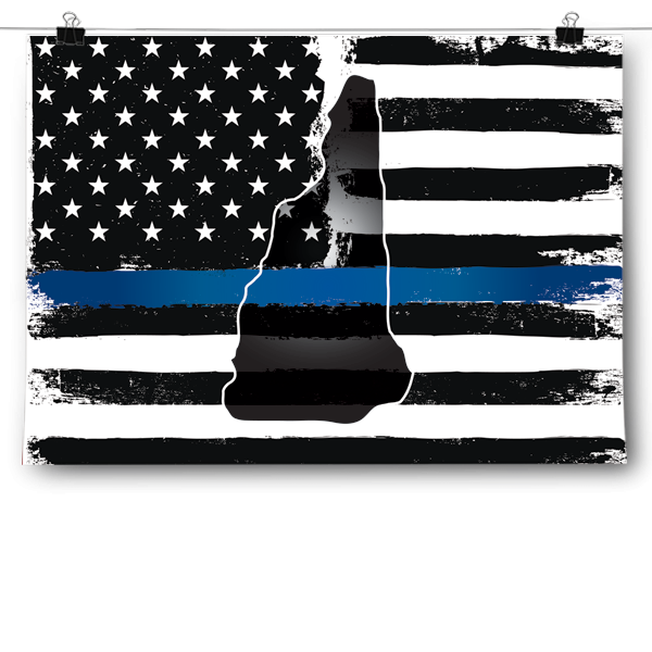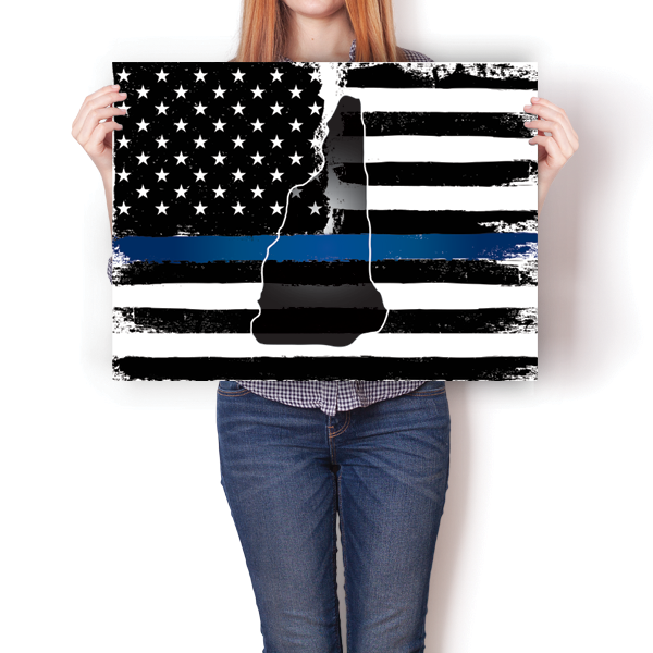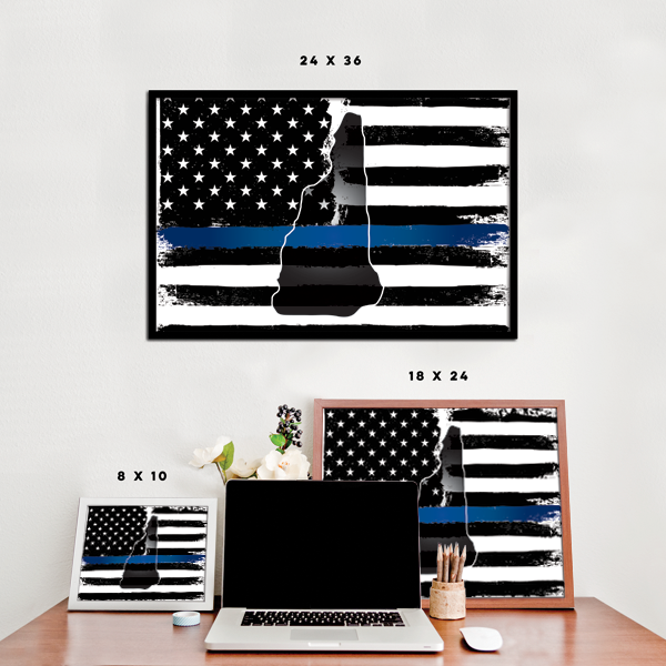 This unique Thin Blue Line - New Hampshire poster was creatively designed and printed on thick paper with a high-quality finish in-house using UV Printing process, where the ink is cured by UV rays to produce sharp and vivid images with a high degree of color accuracy.