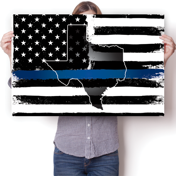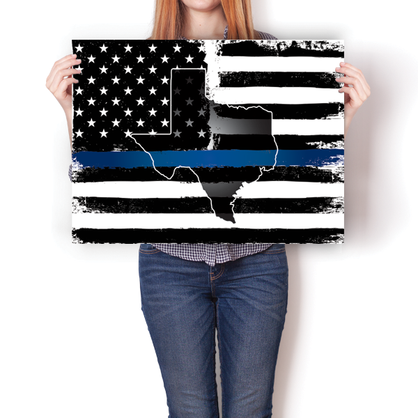 This unique Thin Blue Line - Texas poster was creatively designed and printed on thick paper with a high-quality finish in-house using UV Printing process, where the ink is cured by UV rays to produce sharp and vivid images with a high degree of color accuracy.