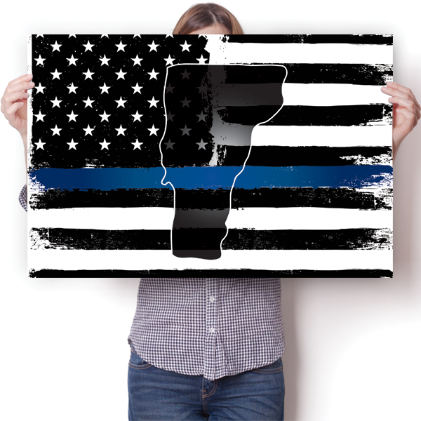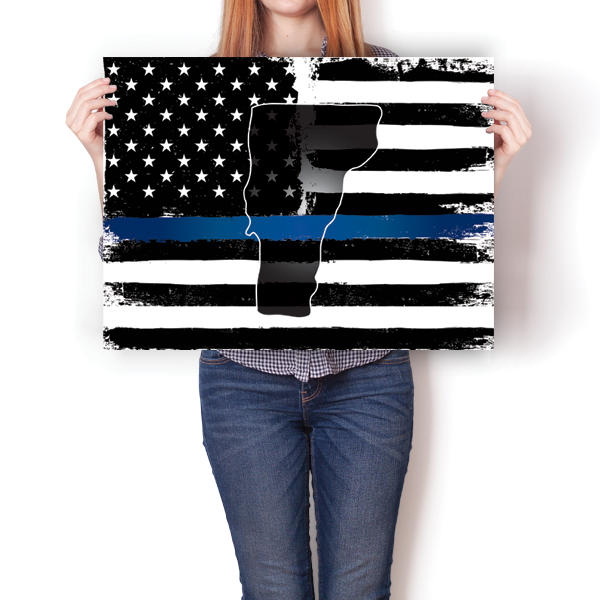 This unique Thin Blue Line - Vermont poster was creatively designed and printed on thick paper with a high-quality finish in-house using UV Printing process, where the ink is cured by UV rays to produce sharp and vivid images with a high degree of color accuracy.