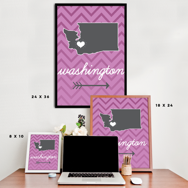 This unique Washington State Chevron Pattern poster was creatively designed and printed on thick paper with a high-quality finish in-house using UV Printing process, where the ink is cured by UV rays to produce sharp and vivid images with a high degree of color accuracy.