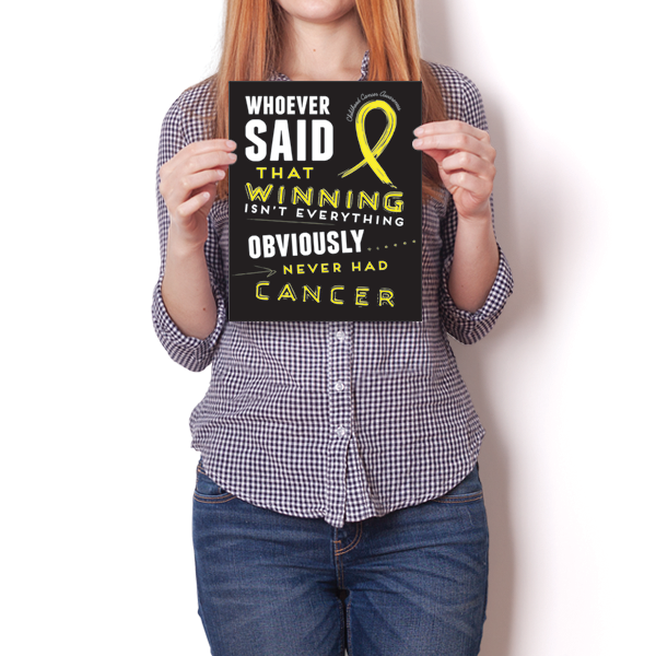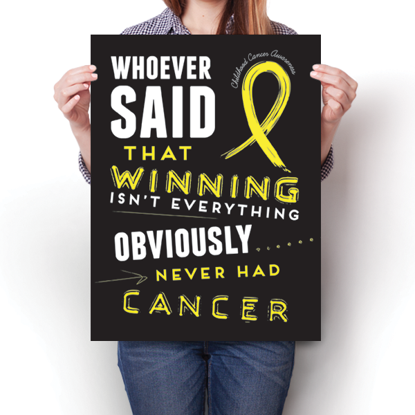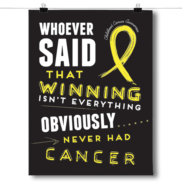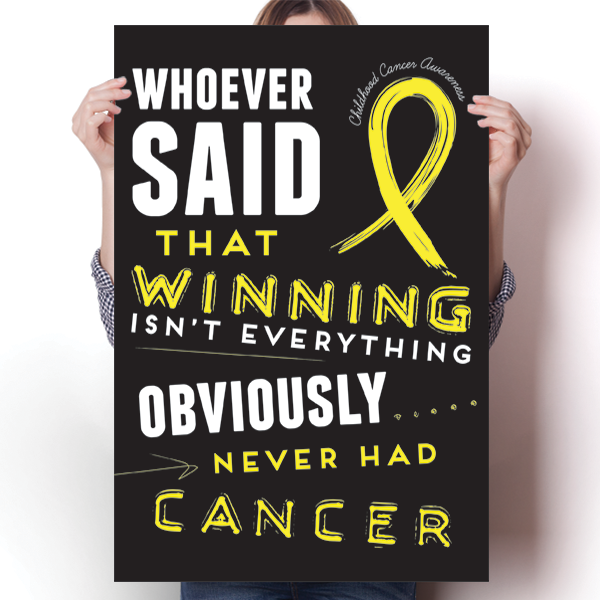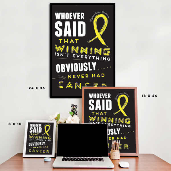 This unique Winning - Childhood Cancer Awareness poster was creatively designed and printed on thick paper with a high-quality finish in-house using UV Printing process, where the ink is cured by UV rays to produce sharp and vivid images with a high degree of color accuracy.