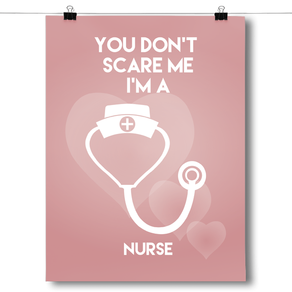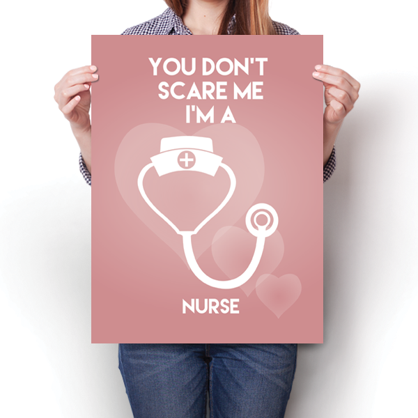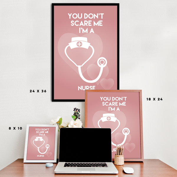 This unique You Don't Scare Me - Nurse poster was creatively designed and printed on thick paper with a high-quality finish in-house using UV Printing process, where the ink is cured by UV rays to produce sharp and vivid images with a high degree of color accuracy.